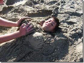 ZMan had to bury DrJ and was “making him into a mermaid” which must include really bodacious ta tas. They were both giggling like crazy. Why are b00bs so funny to boys? Oh wait. Nevermind. ;-)